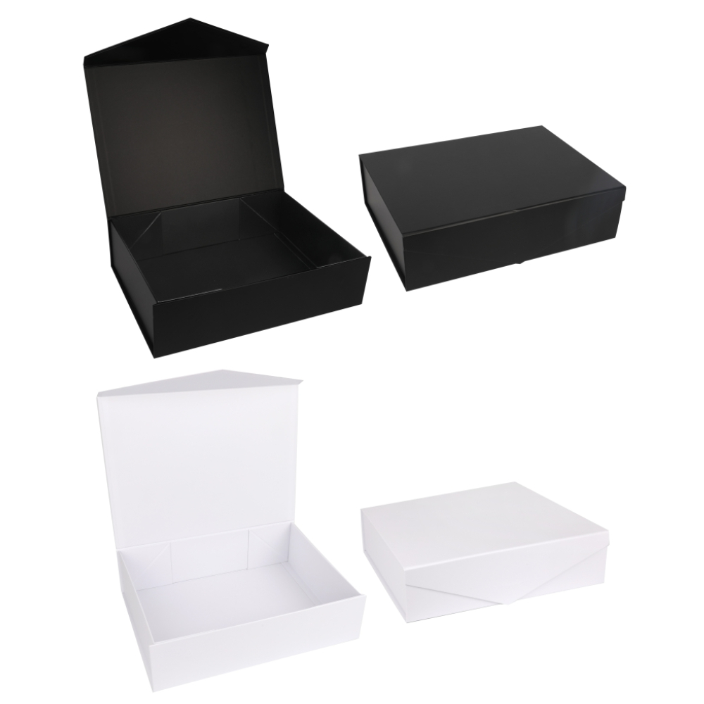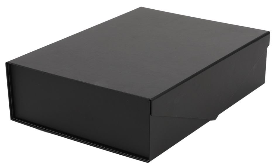 Laminated cardboard collapsible gift box with magnetic clip