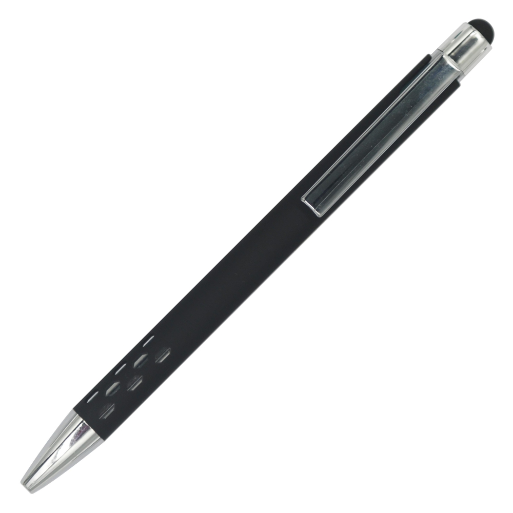 Rubberized coating barrel, metal clip, polished chrome plated trims, stylus aluminium pen,